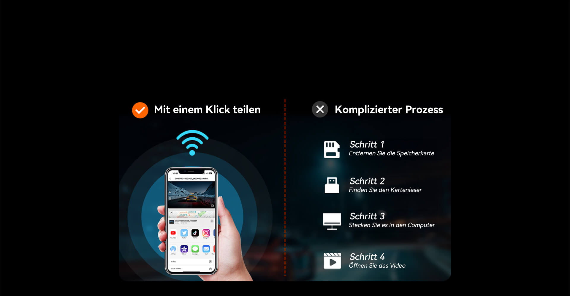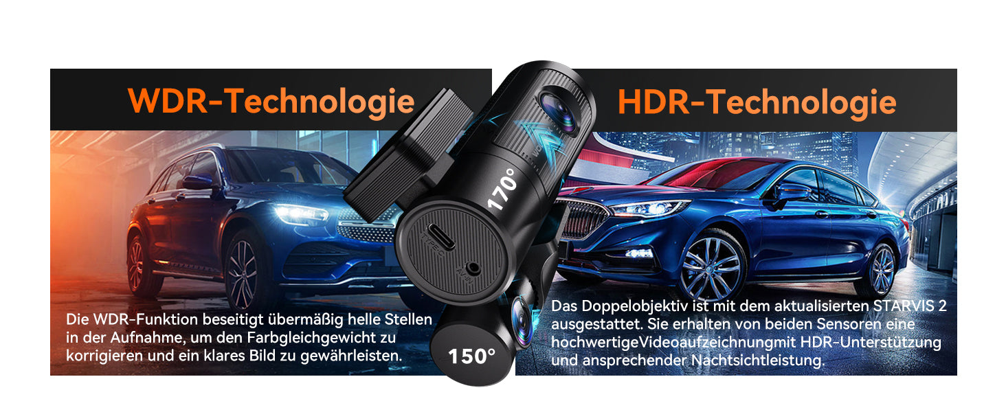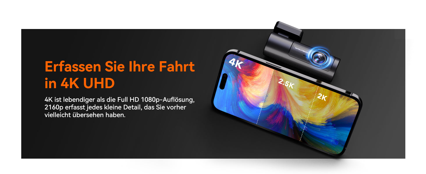 i05 | WOLFBOX Dashcam Front- und Rückkamera, 4K Dashcam mit GPS WiFi UHD 2160P/1600P + 1080P