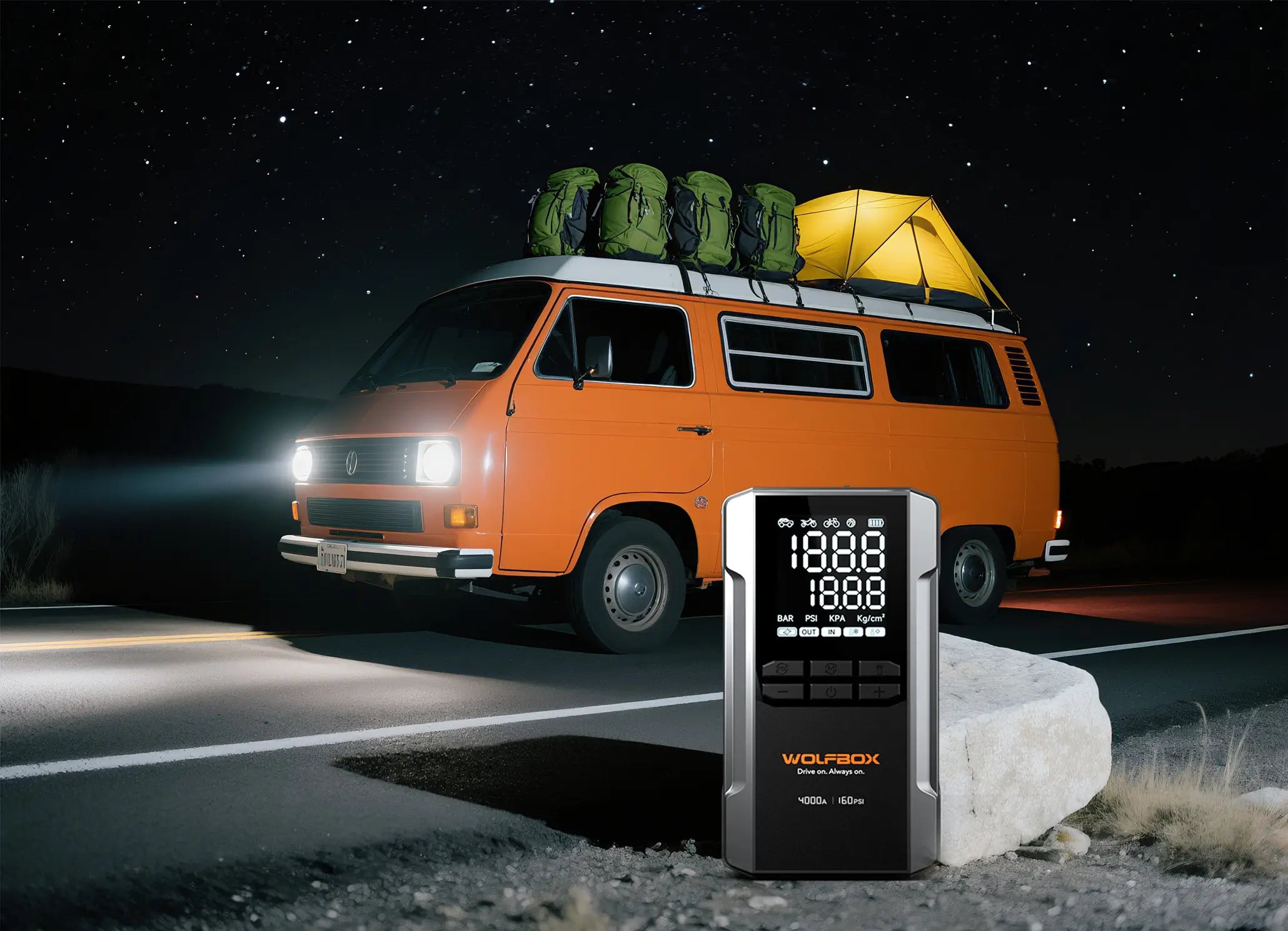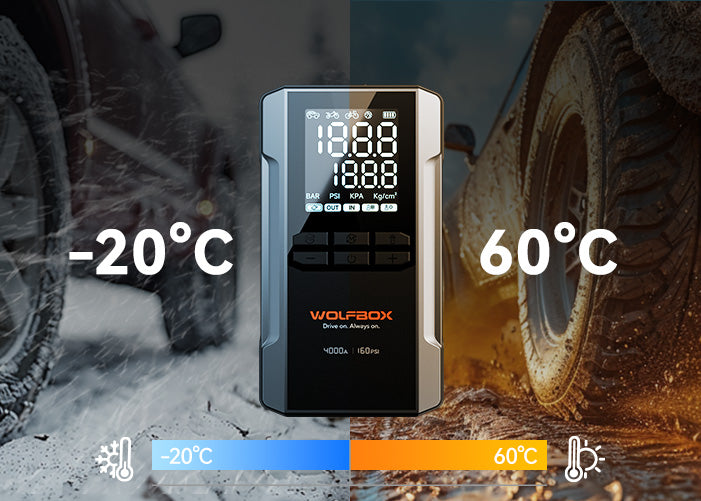 Egal, ob Sie mit einer leeren Batterie, einem platten Reifen oder einem Stromausfall unterwegs zu tun haben – dieses 4-in-1 Starthilfe- und Luftkompressor-Gerät hält Sie stets vorbereitet, wohin die Straße Sie auch führt.