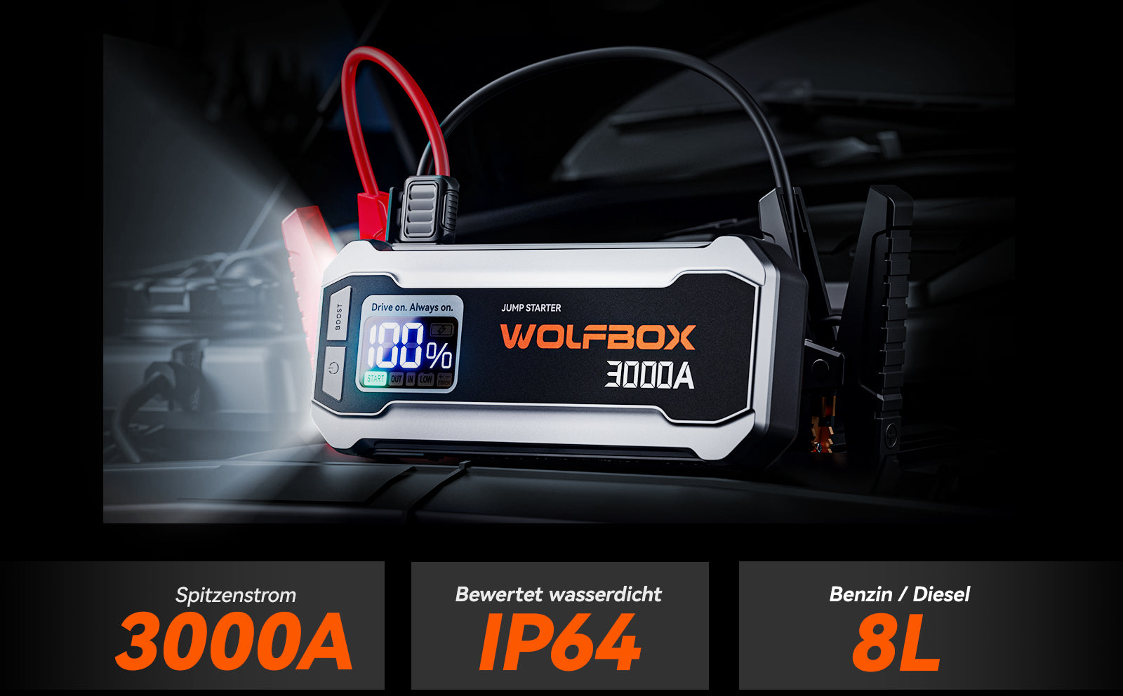 Schalten Sie sofortige Starts mit unserem 3000A Spitzenleistungs-Starthilfegerät frei – Leistung, die Sie nie warten lässt.