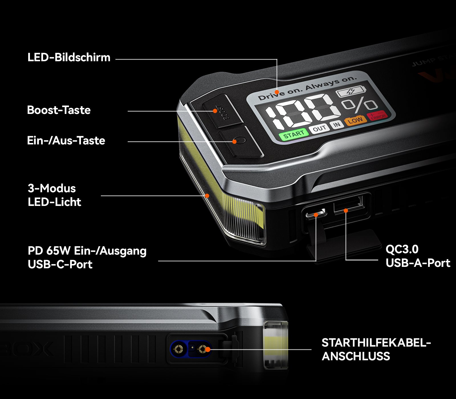 Ihre All-in-One-Standby-Lösung für jeden 8L/12V Fahrzeugstart und das Laden jedes Geräts.