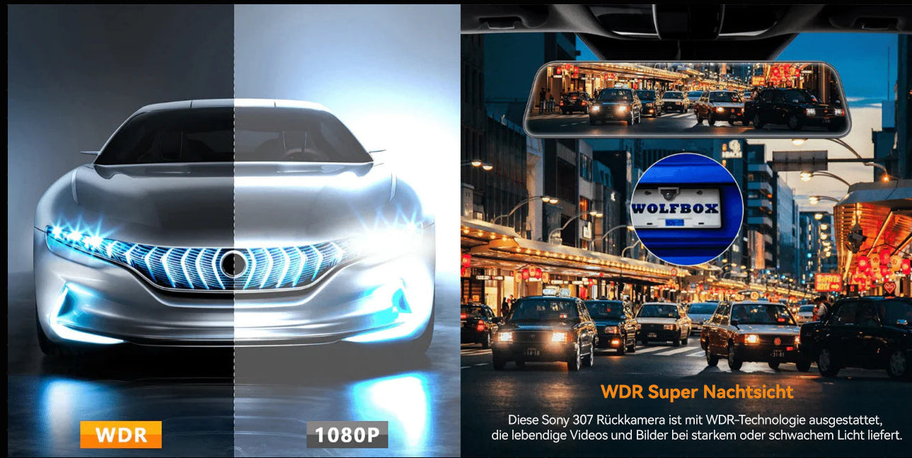 WOLFBOX Verbesserte WDR Rückfahrkamera, Wasserdichte Auto-Rückkamera